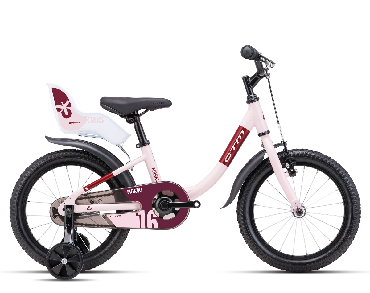Dětské kolo CTM Marry 16" s lehkým hliníkovým rámem je skvělou volbou pro děti od 4 do 7 let, s doporučenou výškou postavy mezi 100 a 125 cm. Kolo je vybaveno plastovými blatníky a přídavnými kolečky pro větší stabilitu, což zajistí bezpečnou jízdu pro vaše malé dobrodruhy.