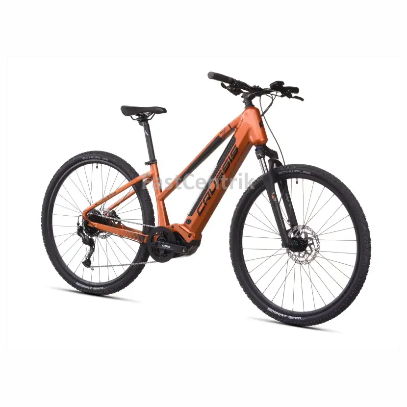 Pánské krosové elektrokolo Crussis e-Cross low 7.11-(691 Wh) s nízkým rámem je komfortním každodenním společníkem pro běžné trasy, víkendové výlety i cestu do práce. Díky nízké rámové trubce se snadno nasedá a sestupuje, což oceníš především při manipulaci s kolem v hustším provozu. O pohon se stará spolehlivý středový motor Panasonic GX Power Plus s točivým momentem 75 Nm, který nabízí plynulou a svižnou asistenci i při náročnějších úsecích. Energii dodává baterie LG Li-Ion 691 Wh (19,2 Ah) s dojezdem až 170 km, takže se nemusíš bát vyrazit i na delší výlety. Odpružená vidlice SR-Suntour NEX HLO DS 700c se zdvihem 63 mm zajišťuje tlumení nerovností a pláště Schwalbe Smart Sam si poradí jak s městským asfaltem, tak s lehkým terénem. Devítirychlostní přehazovačka Shimano Alivio umožňuje snadno volit převody podle trasy a barevný LCD displej Panasonic zobrazuje všechny potřebné informace o jízdě i stavu elektropohonu.