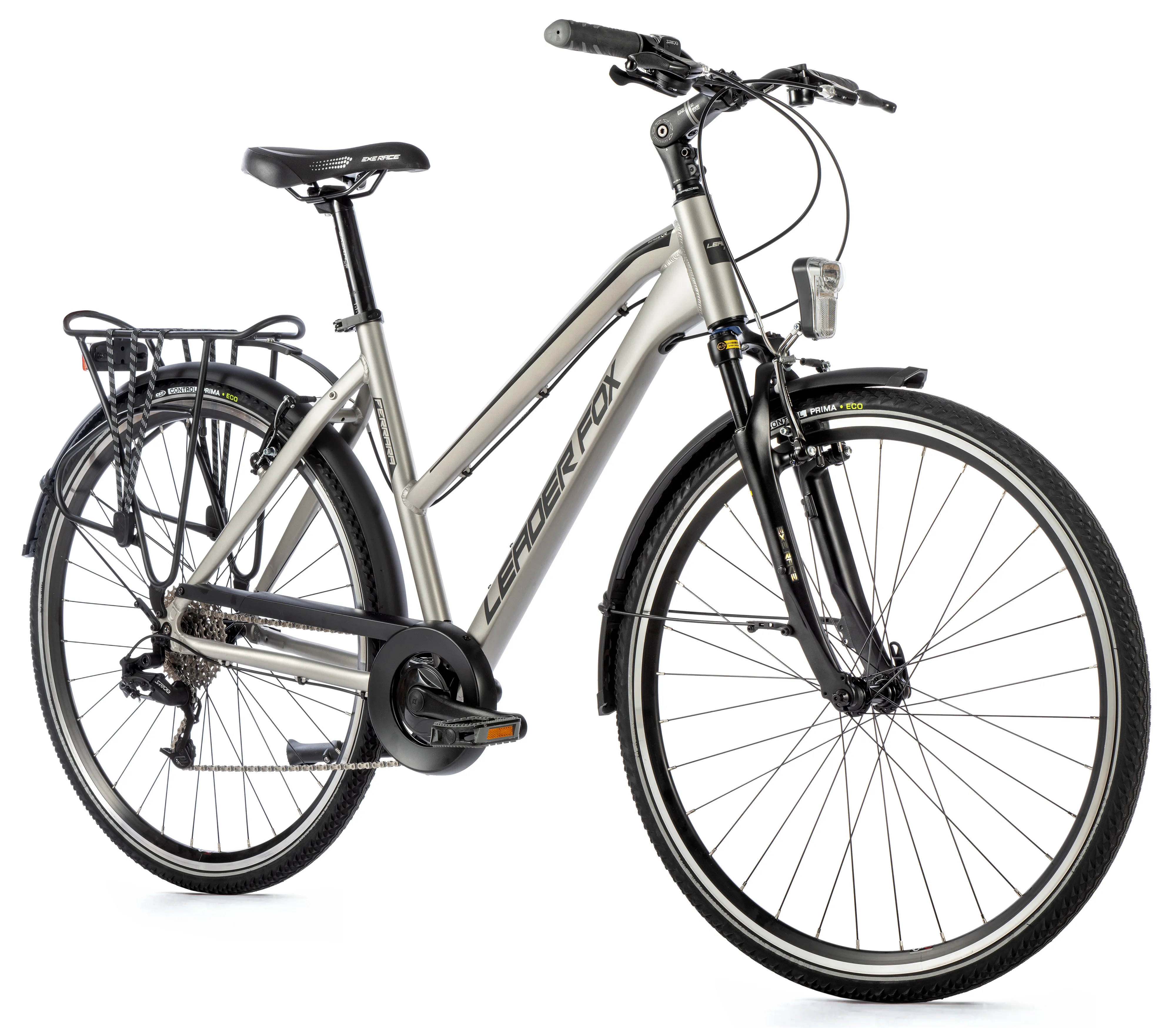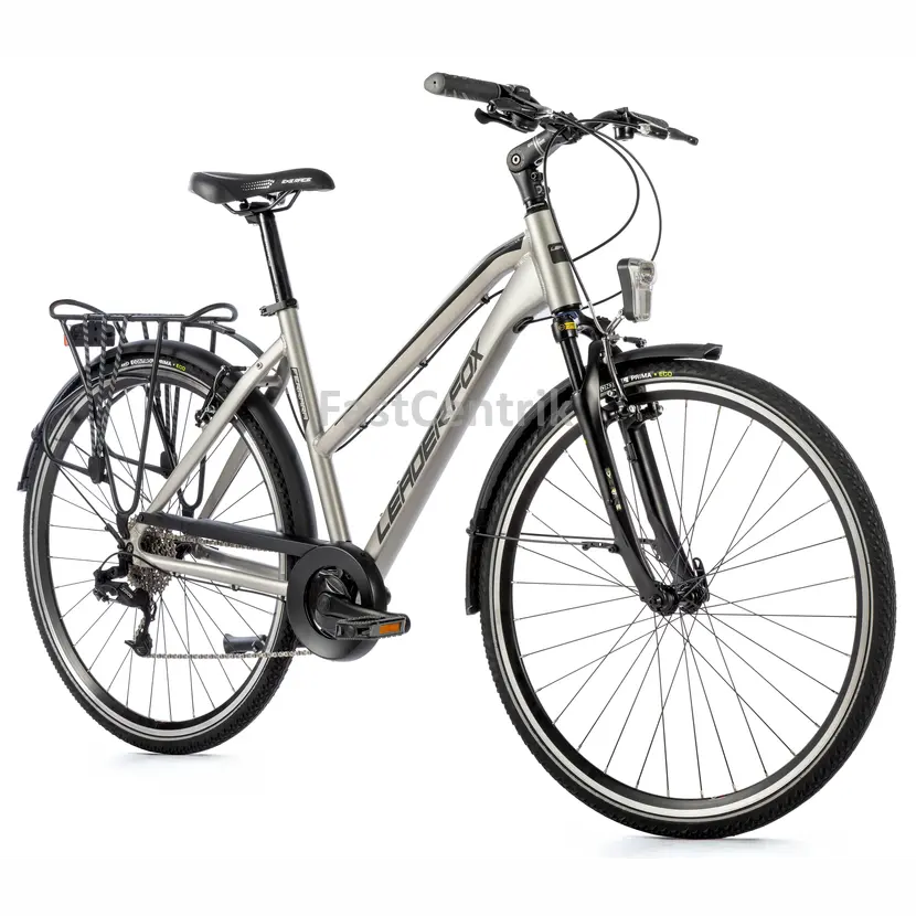Dámské trekingové kolo Leader Fox FERRARA 28" v hliníkovém rámu, s blatníky a bateriovým LED osvětlením. Užijte si pohodlné cestování po městě nebo odpolední výlety po cyklostezkách